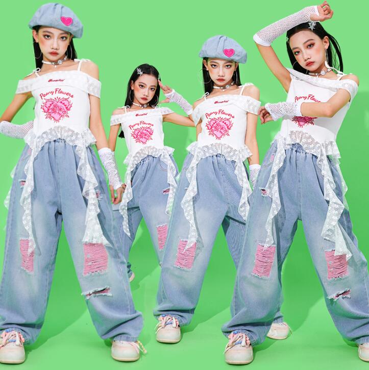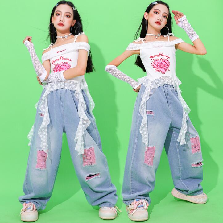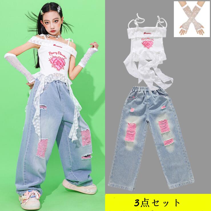 女の子 デニムダンス衣装 ジャズ ヒッ キッズ ベビー マタニティ 続々入荷中 パンツ 2点セット 3点セット 110 120 130 140 150 160 170 180