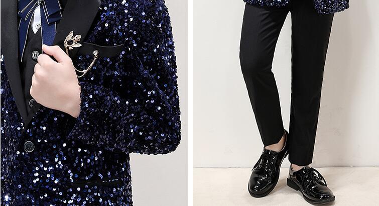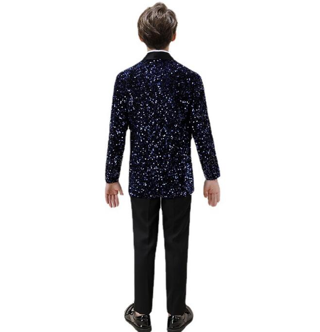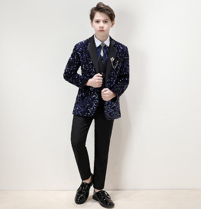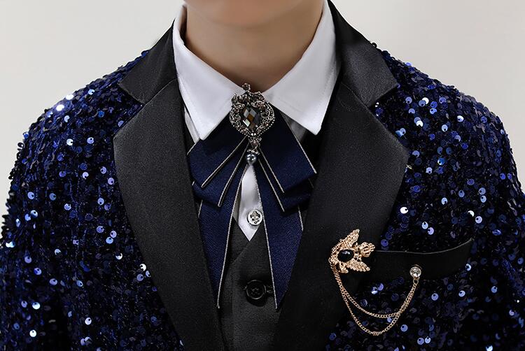 スパンコールスーツ キッズ 礼服 男の子スーツ 結婚式 ピアノ 発表会 演奏会 王子様 スパンコール礼服 子供舞台演出スーツ キラキラ タキシード パンツ セット内容選択可 ネイビー ベスト