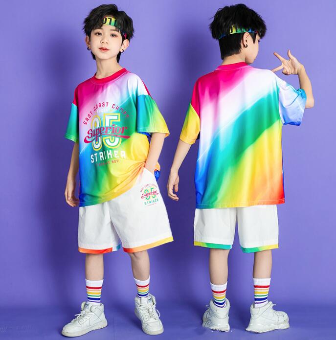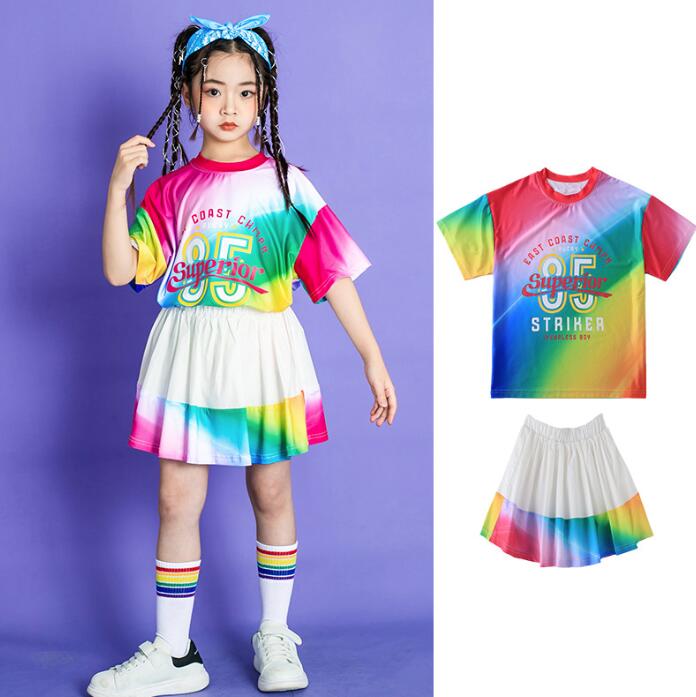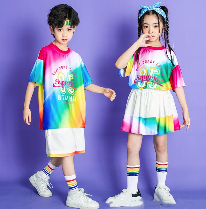 キッズ ダンス 衣装 虹色 チア 演出 キッズ トップス シャツ ブラウス 新作 女の子 男の子 110 120 130 140 150 160 170 180
