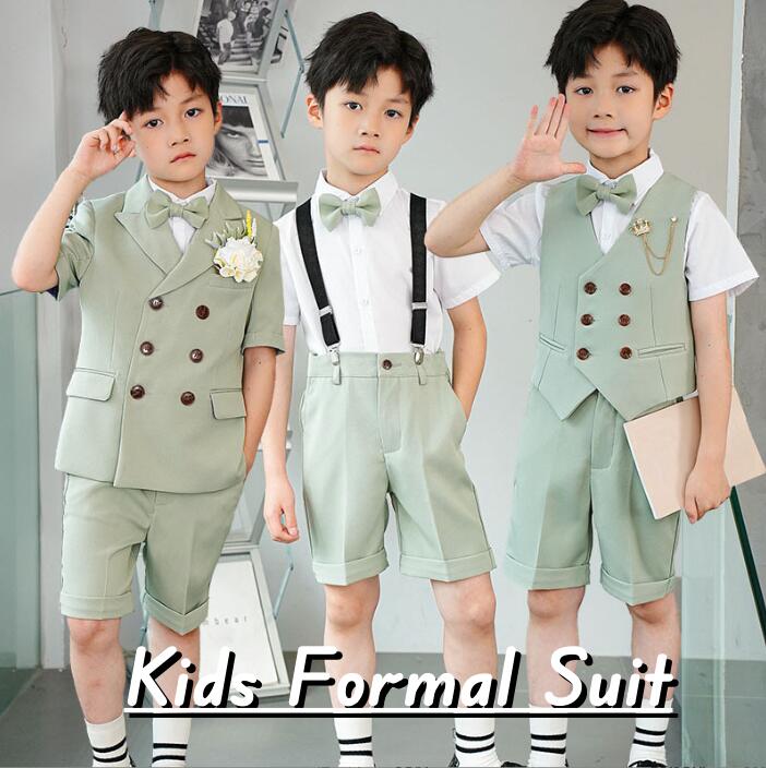 新作 キッズ フォーマルスーツ 男の子 礼服 紳士服 子供半袖スーツ 子供 ピアノ 発表会 結婚式 入学式 卒業式 かっこいいスーツ ベストスーツ サロペットスーツ 演出服