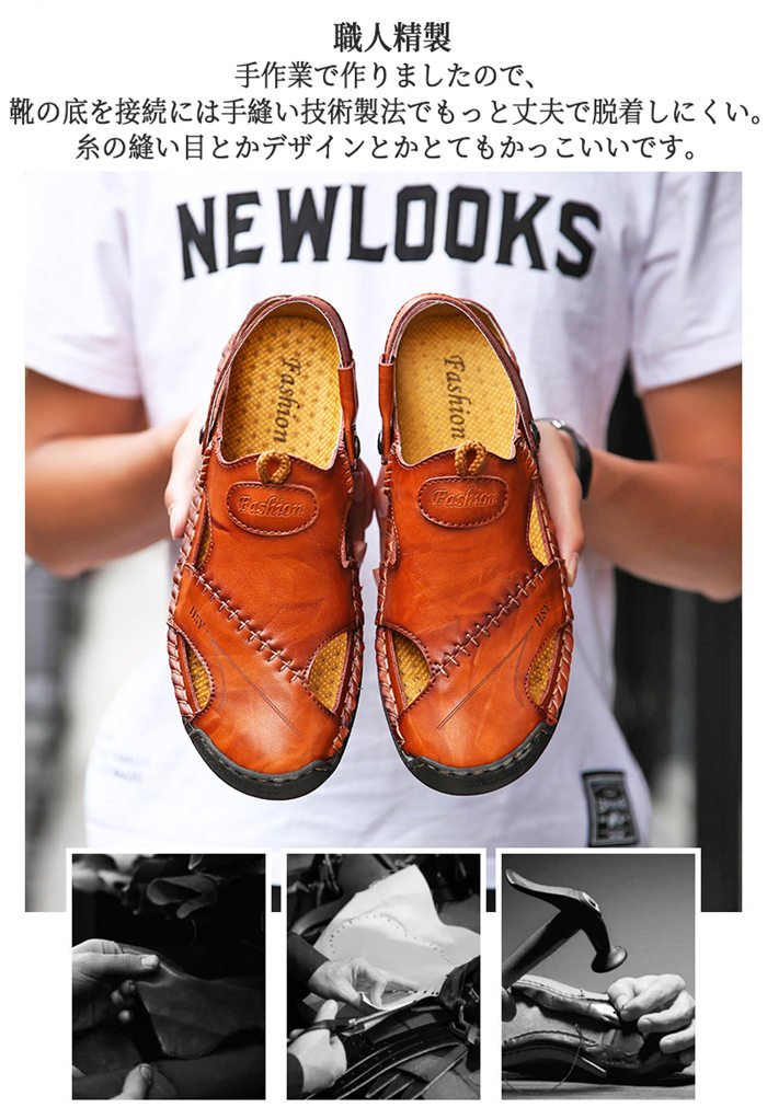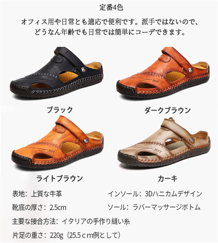 サンダル メンズ 大きいサイズ レザー 靴 新登場! ブラック ダークブラウン カーキ 38(24cm) 39(24.5cm) 40(25cm) 41(25.5cm) 42(26cm) 43(26.5cm) 44(27cm) 45(27.5cm) 46(28cm) 47(28.5cm) 48(29cm)