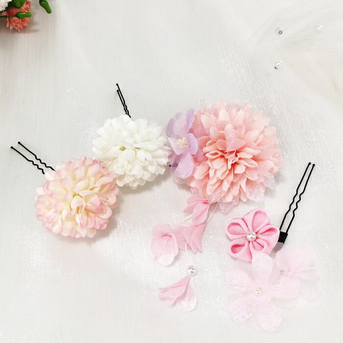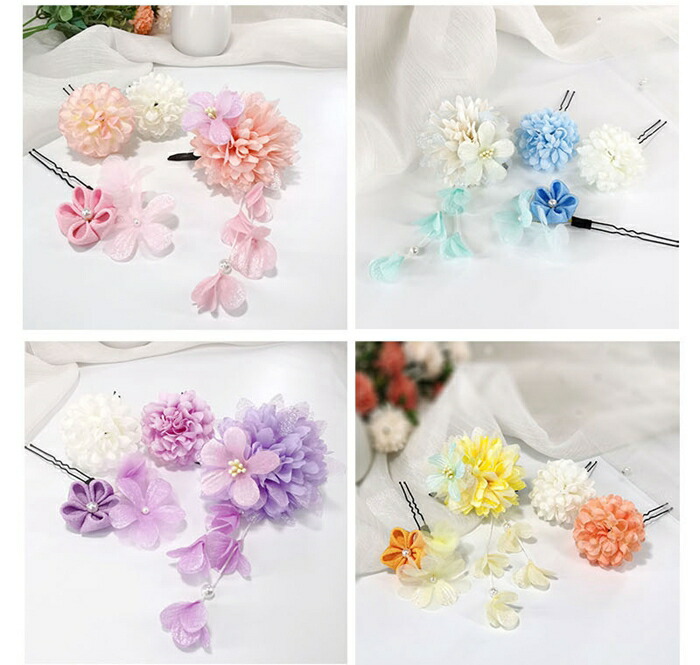 アクセサリー 4点セット ヘアアクセサリー女の子 7歳 3歳 子供 キッズ 髪飾り女の子 髪飾り パッチンピンお祭り成人式 卒業式 袴 祭り 浴衣 ゆかた 七五 着物