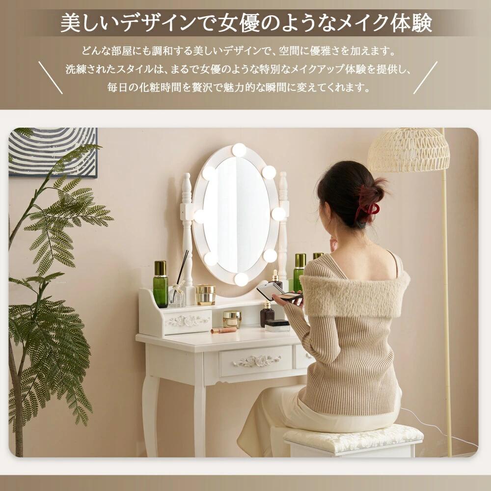 化粧台 テーブル 鏡台 ライト付き 幅