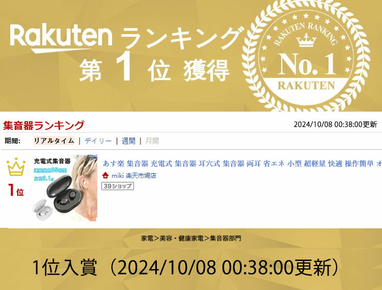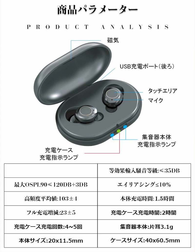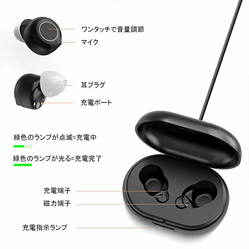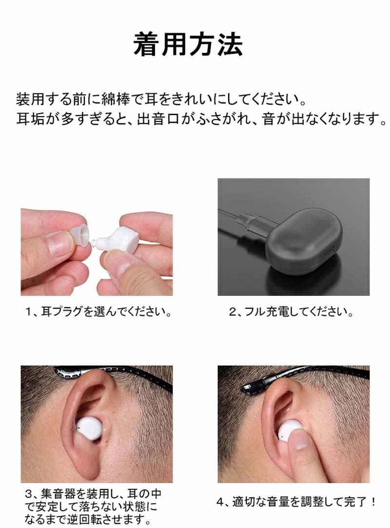集音器 充電式 耳穴式 両耳 省エネ ホワイト ブラック