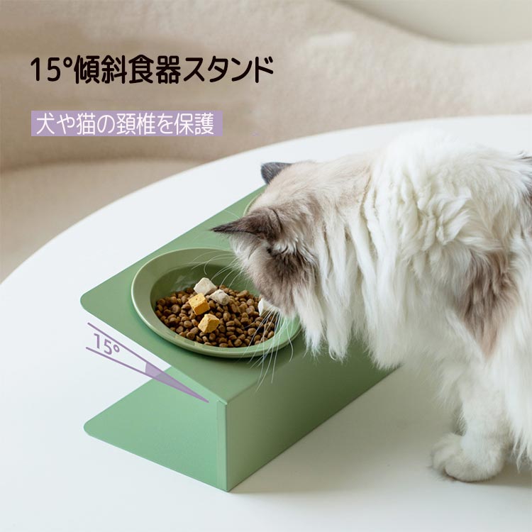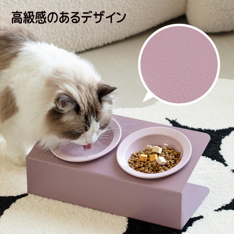 猫 食器 フードボウル 食器スタンド アイボリー ピンク パープル グリーン