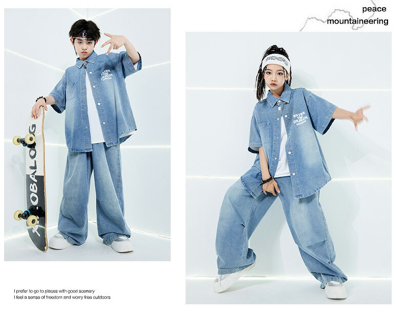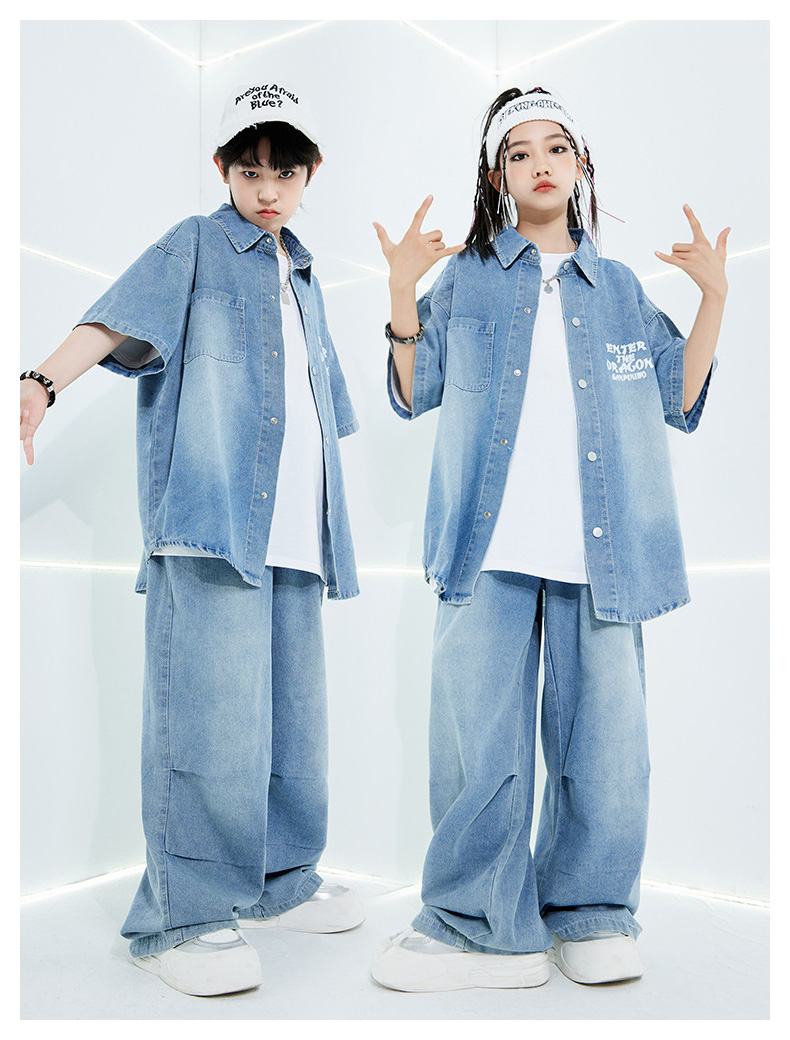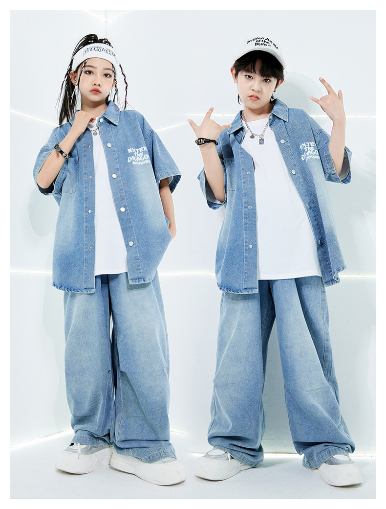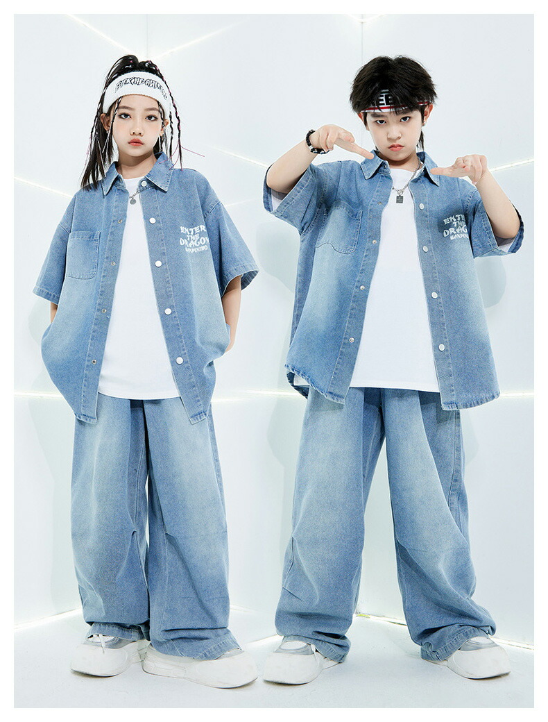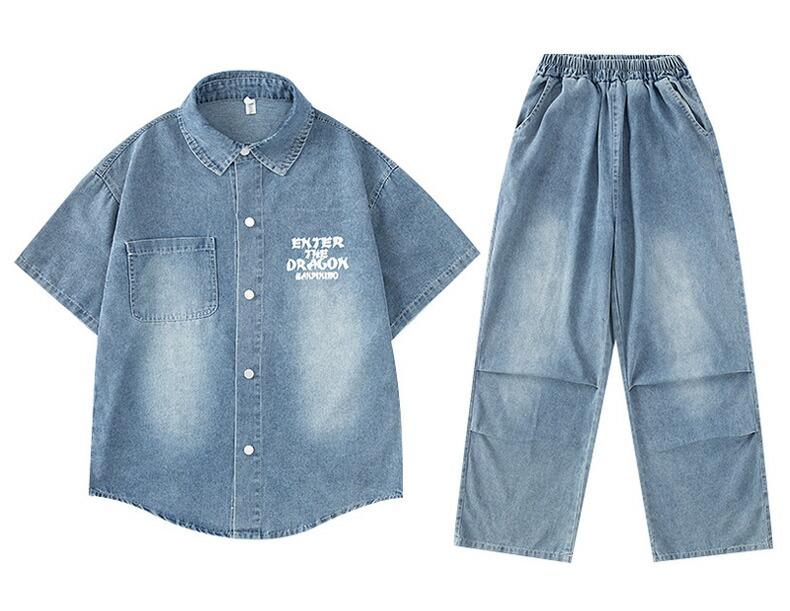 デニムスーツ 半袖 ブルー キッズ ダ キッズ スーツ カジュアルセットアップ その他 早い者勝ち デニムシャツ単品 デニムパンツ単品 デニムシャツ+デニムパンツ デニム2点セット+白Tシャツ 120 130 140 150 160 170 180