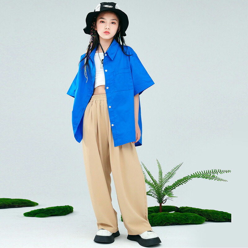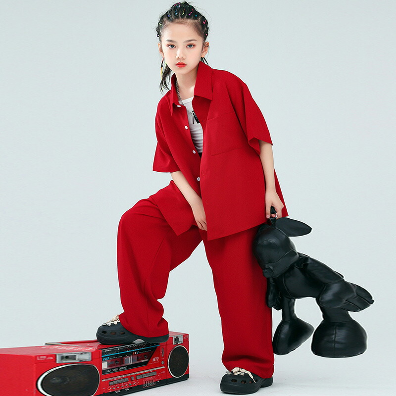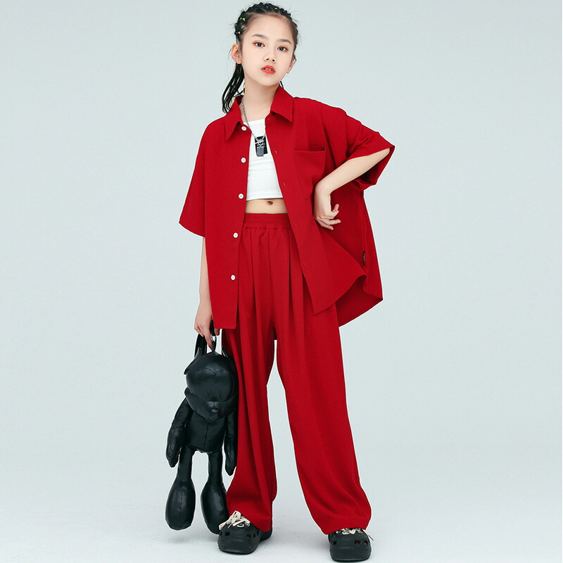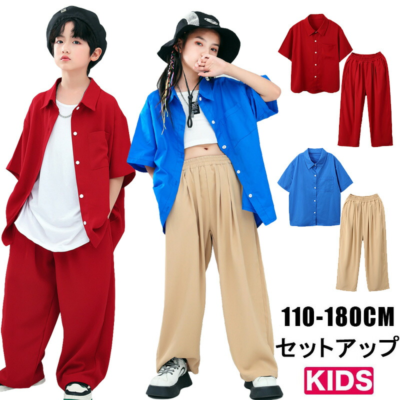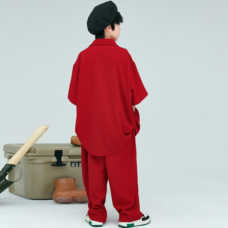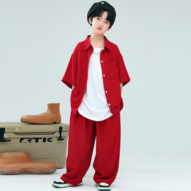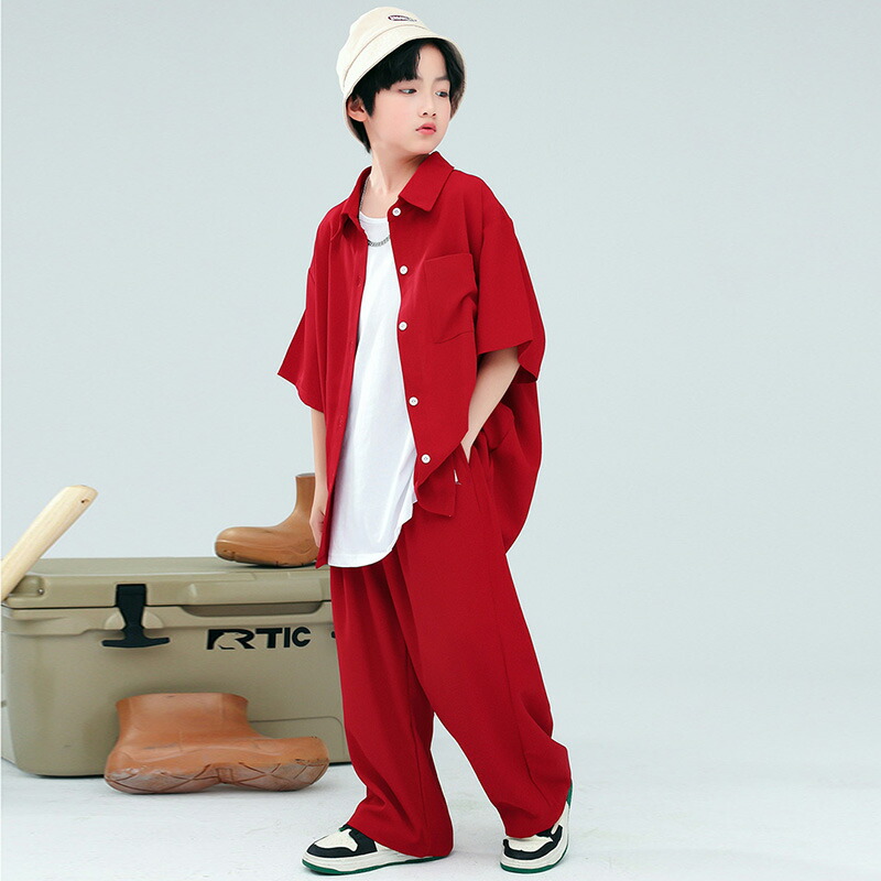 赤 半袖 夏 キッズ ダンス衣装 セッ キッズ スーツ カジュアルセットアップ カジュアルパンツセット 続々登場 赤シャツ+赤パンツ 赤シャツ 赤パンツ ベージュパンツ 青シャツ 110 120 130 140 150 160 170 180