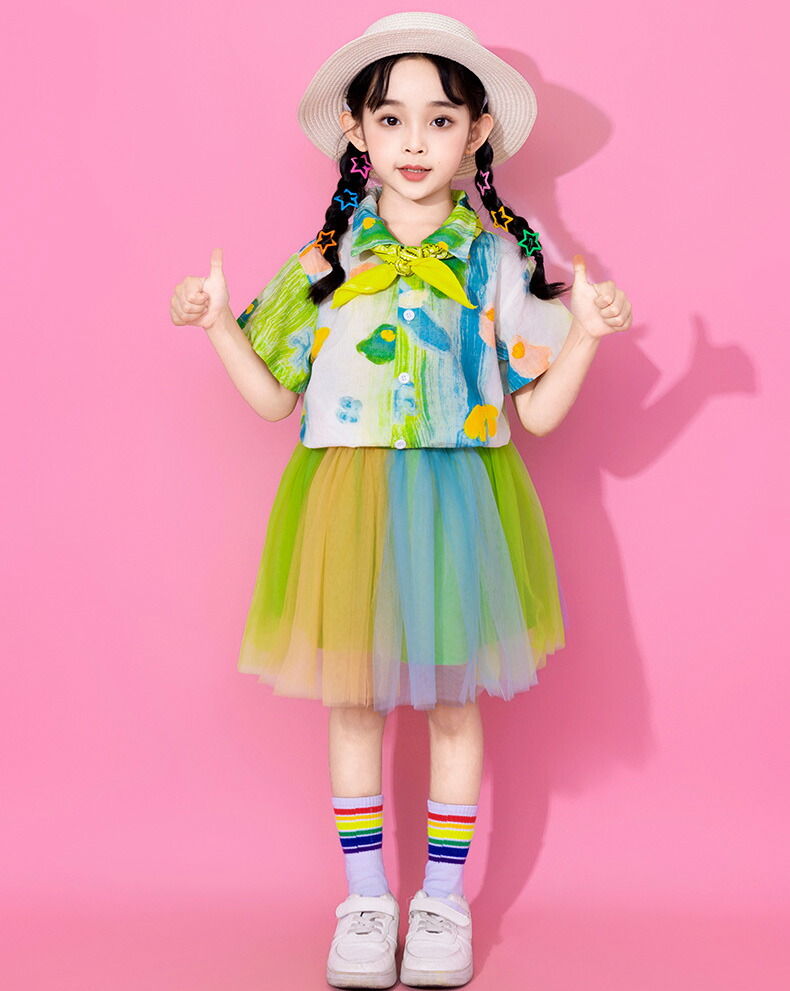 グリーン 半袖 Tシャツ チアガール キッズ ベビー マタニティ 新作 Tシャツ単品 スカート単品 パンツ単品 Tシャツ+スカート Tシャツ+パンツ 100 110 120 130 140 150 160 170 180