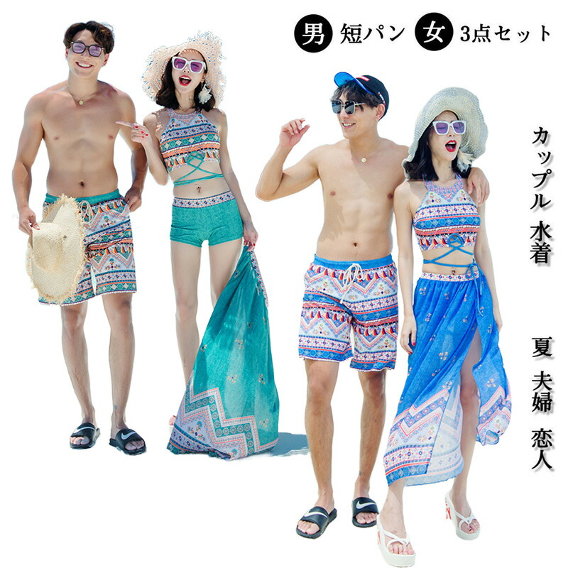 水着ペア ペアルック カップル水着 レ 水着 早い者勝ち ブルー男子パンツ ¥3300 ブルー女子3点セット¥5170 グリーン男子パンツ ¥3300 グリーン女子3点セット¥5170 M L XL 2XL 3XL 4XL