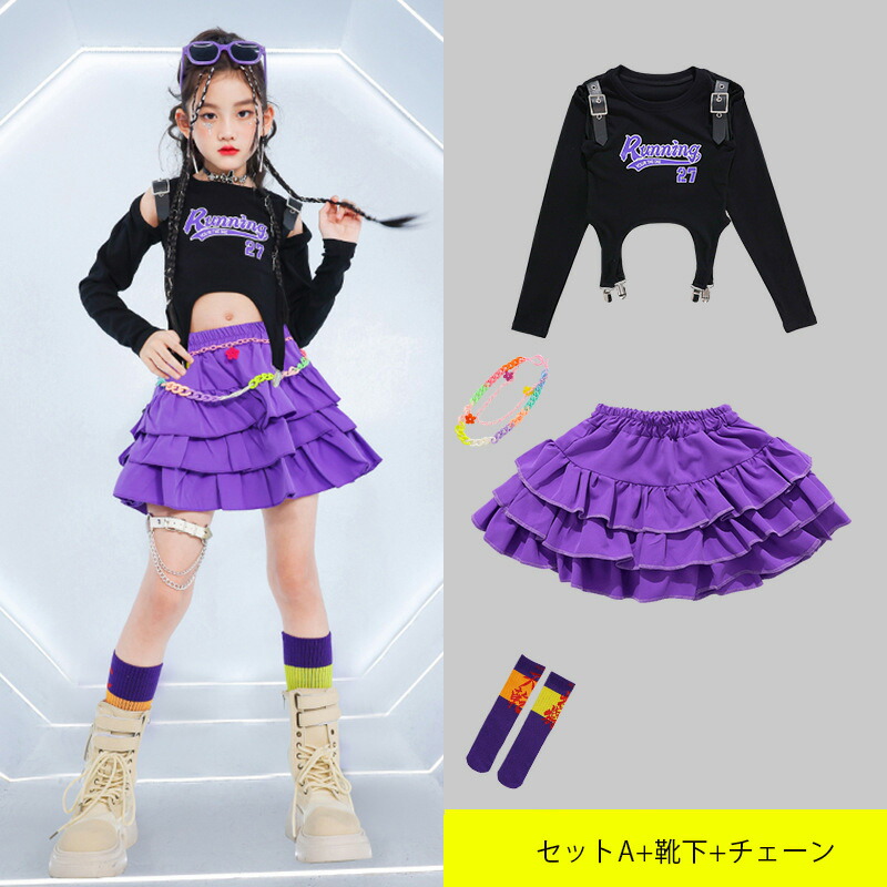 キッズ ダンス 衣装 ヒップホップ 黒 キッズ ベビー マタニティ 新登場! 上着のみ スカートのみ ズボンのみ スカートB+短パン セットA:上着+スカート セットA+靴下 セットA+靴下+チェーン セットA+レッグウォーマー レッグウォーマー4点セット セットB:上着+ズボン セットB:上着+ズボン+チェーン セットC:上着+スカートB+短パン セットC+靴下 110 120 130 140 150 160 170