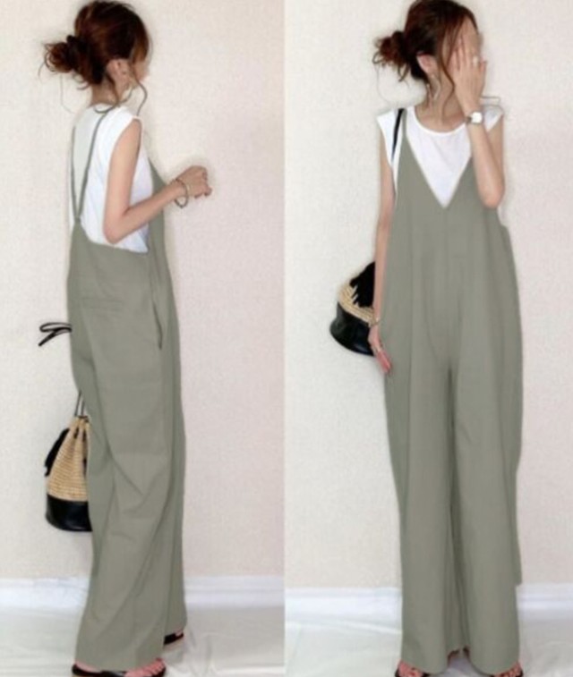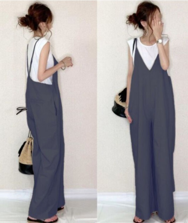 サロペット オールインワン パンツ レディース ロングパンツ サロペットパンツ ワイドパンツ パンツドレス オーバーオール ゆったり 体型カバー 着痩せ 無地 マキシ丈 カジュアル 大きいサイ ロング