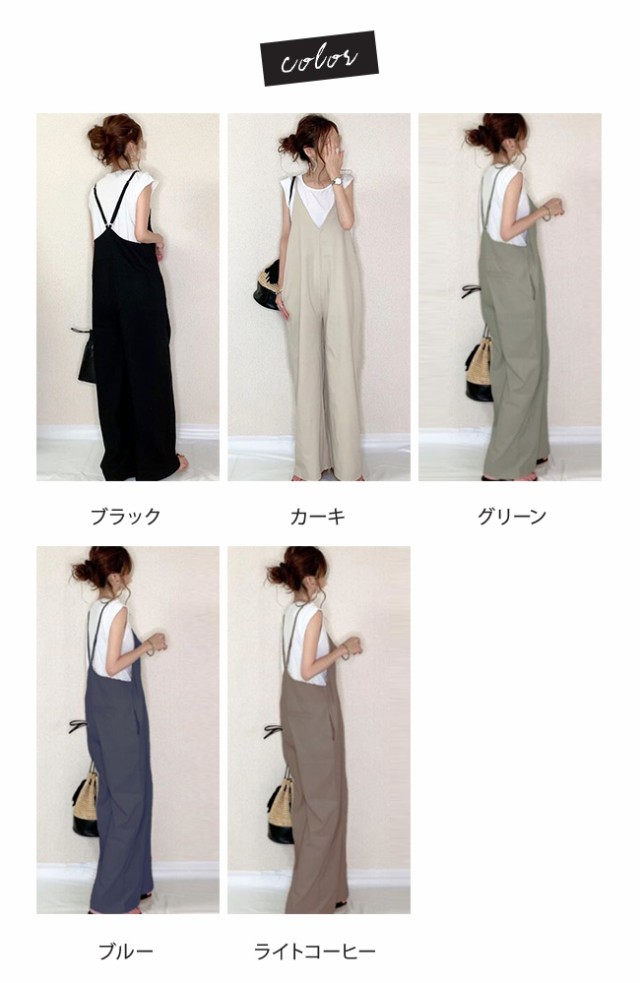 オールインワン サロペット パンツ レ オールインワン サロペット 続々入荷中 ブラック カーキ グリーン ブルー ライトコーヒー