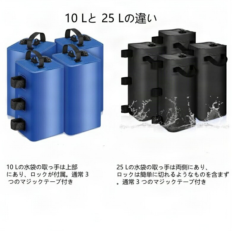 タープテント用 ウェイト バンドテープ アウトドア テント タープ テントアクセサリー その他 人気 ブラック グリーン ブルー カーキ グレー 10L(2個入) 20L(2個入) 25L(2個入) 10L(4個入) 20L(4個入) 25L(4個入)