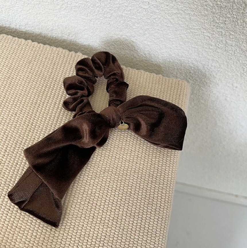 ベルベットリボンシュシュ ヘアゴム 秋冬 おしゃれ シュシュ ブラック レディースヘアアクセサリー 大人可愛い ブラウン