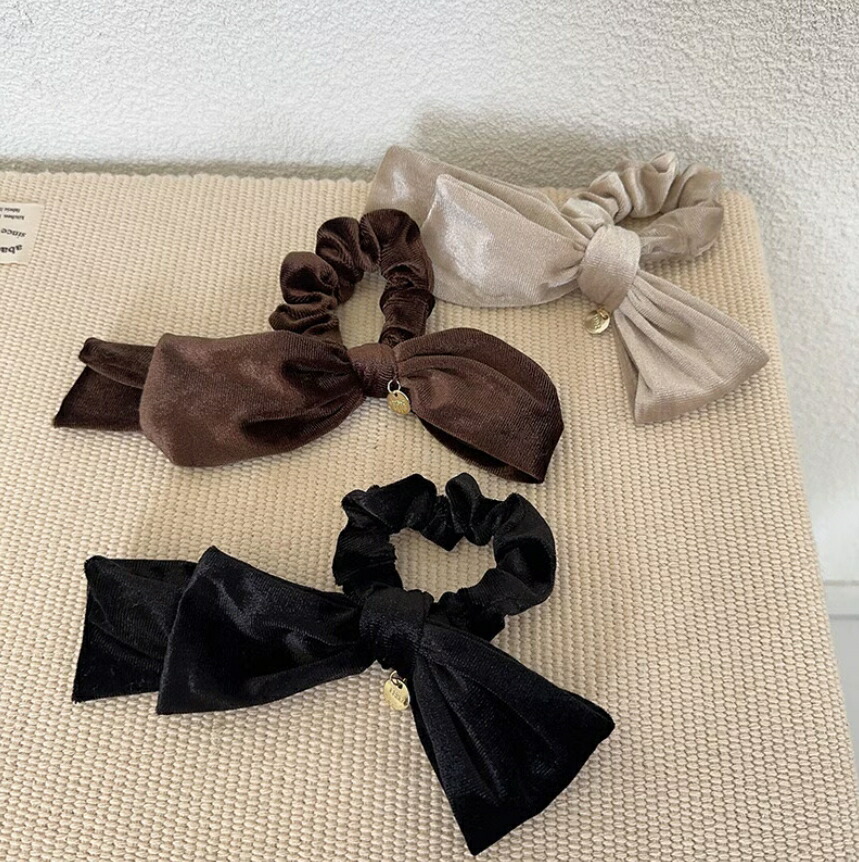 ベルベットリボンシュシュ ヘアゴム 秋冬 おしゃれ シュシュ ブラック ブラウン レディースヘアアクセサリー 大人可愛い