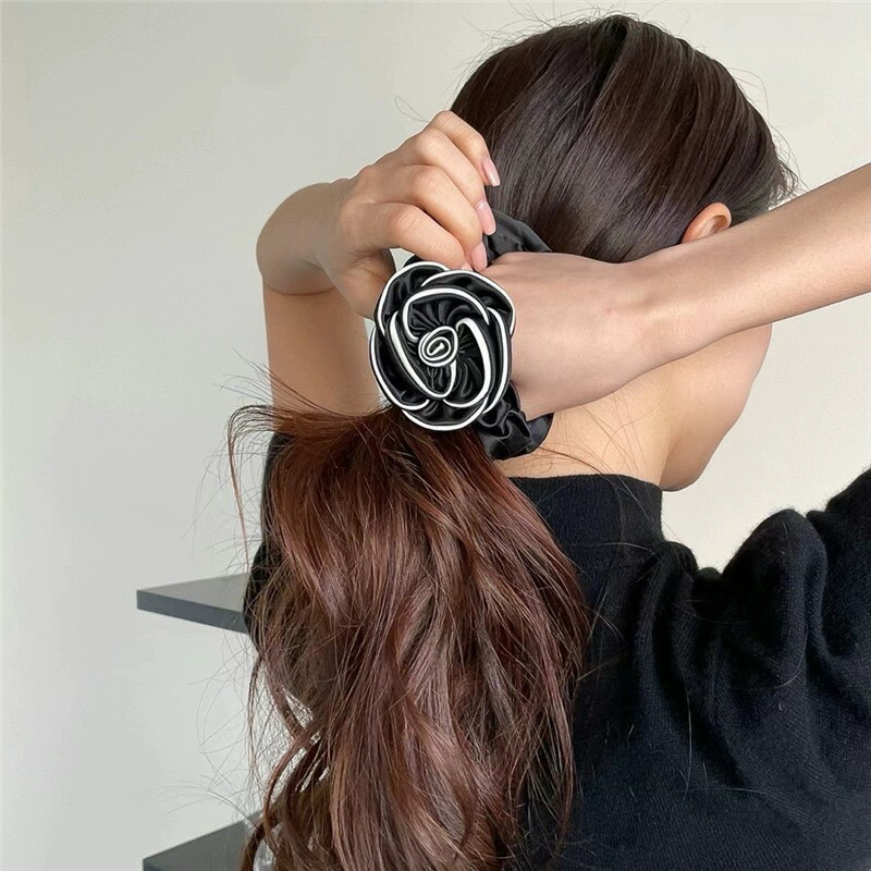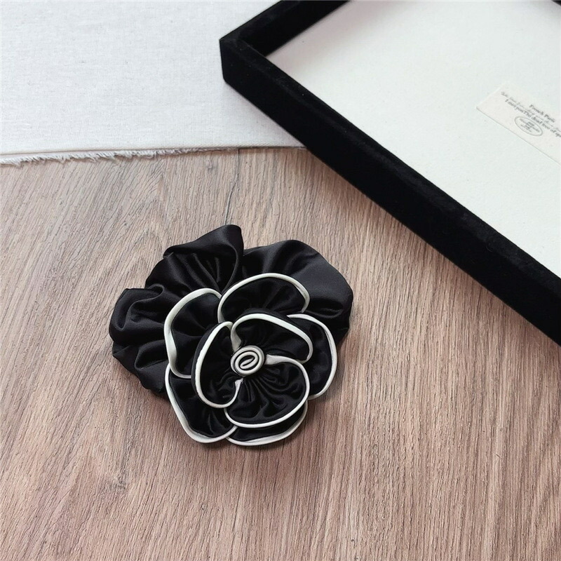 フラワーシュシュ カメリア サテンシュ レディースジュエリー アクセサリー ヘアアクセサリー シュシュ 豊富 ホワイト ブラック