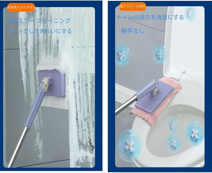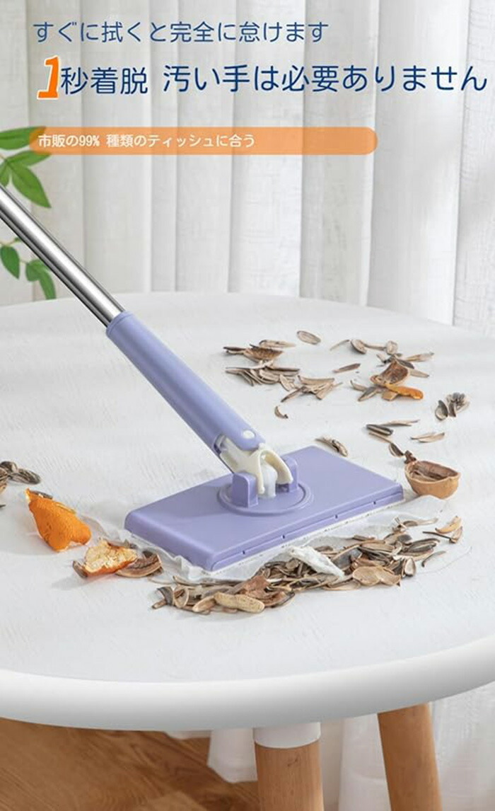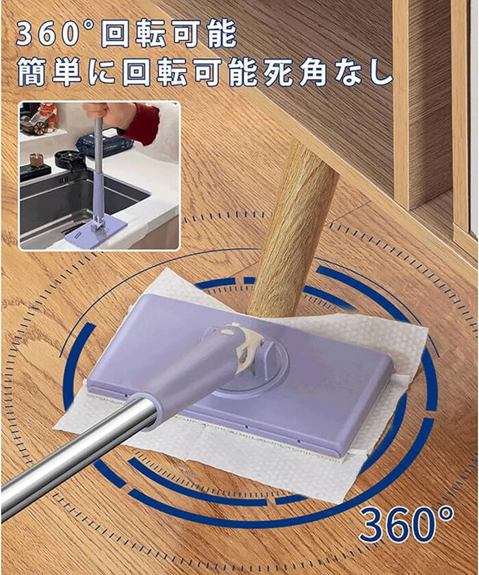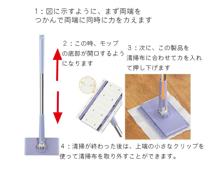 自動で雑巾を挟むモップ、ペーパータオル 日用品雑貨 文房具 手芸 続々入荷中 パープル+4枚両面布 ホワイト+4枚両面布 70cm 93cm