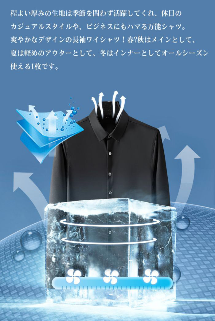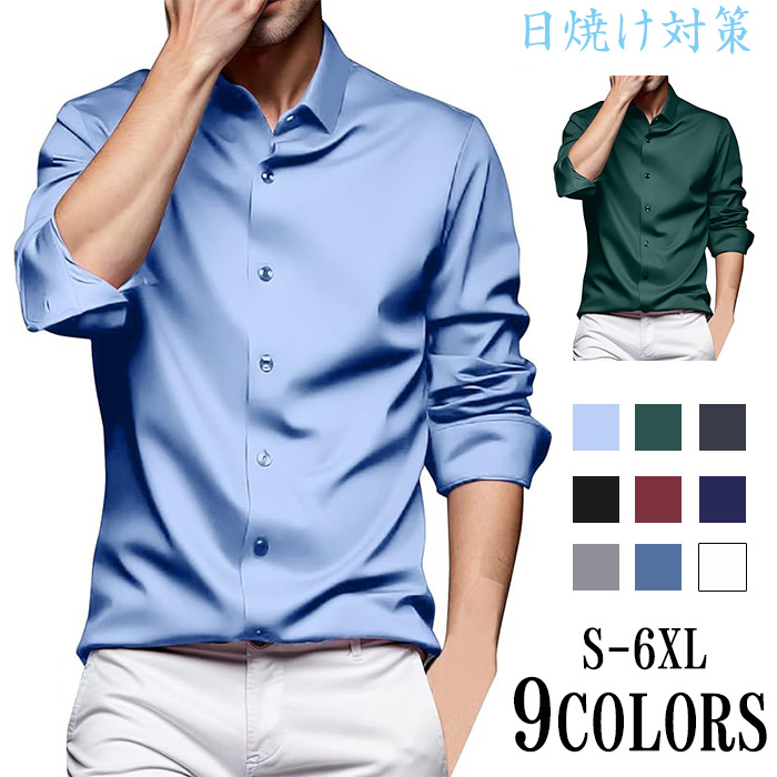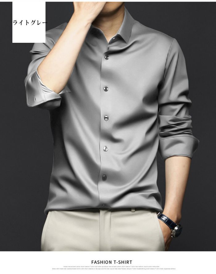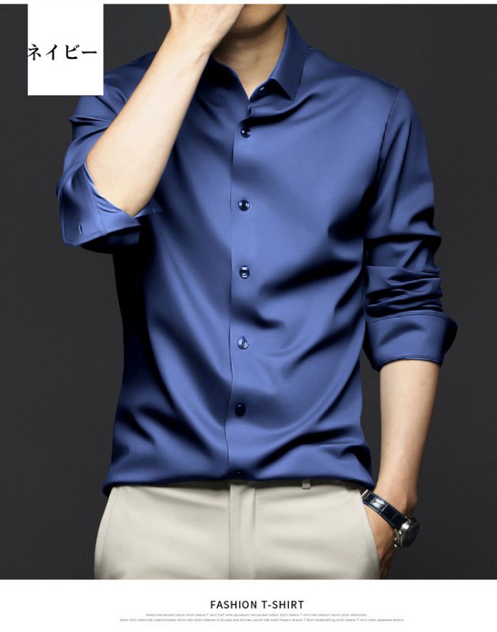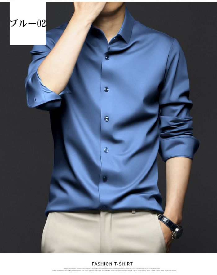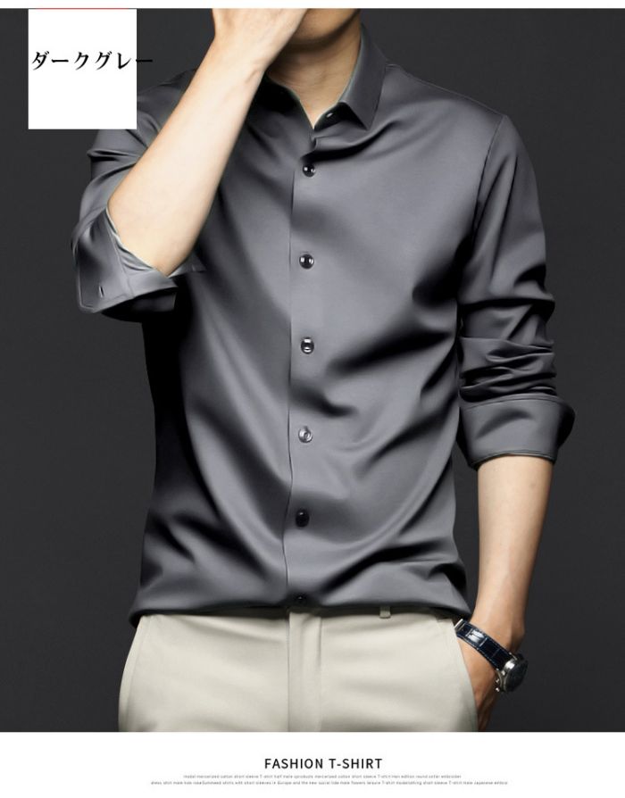 メンズ耐シワ性極薄アイスシルクワイシャ トップス ワイシャツ 新登場! ブルー01 ブルー02 ブラック ネイビー ダークグレー ライトグレー ホワイト レッド グリーン 38/S 39/M 40/L 41/XL 42/2XL 43/3XL 44/4XL 45/5XL 46/6XL