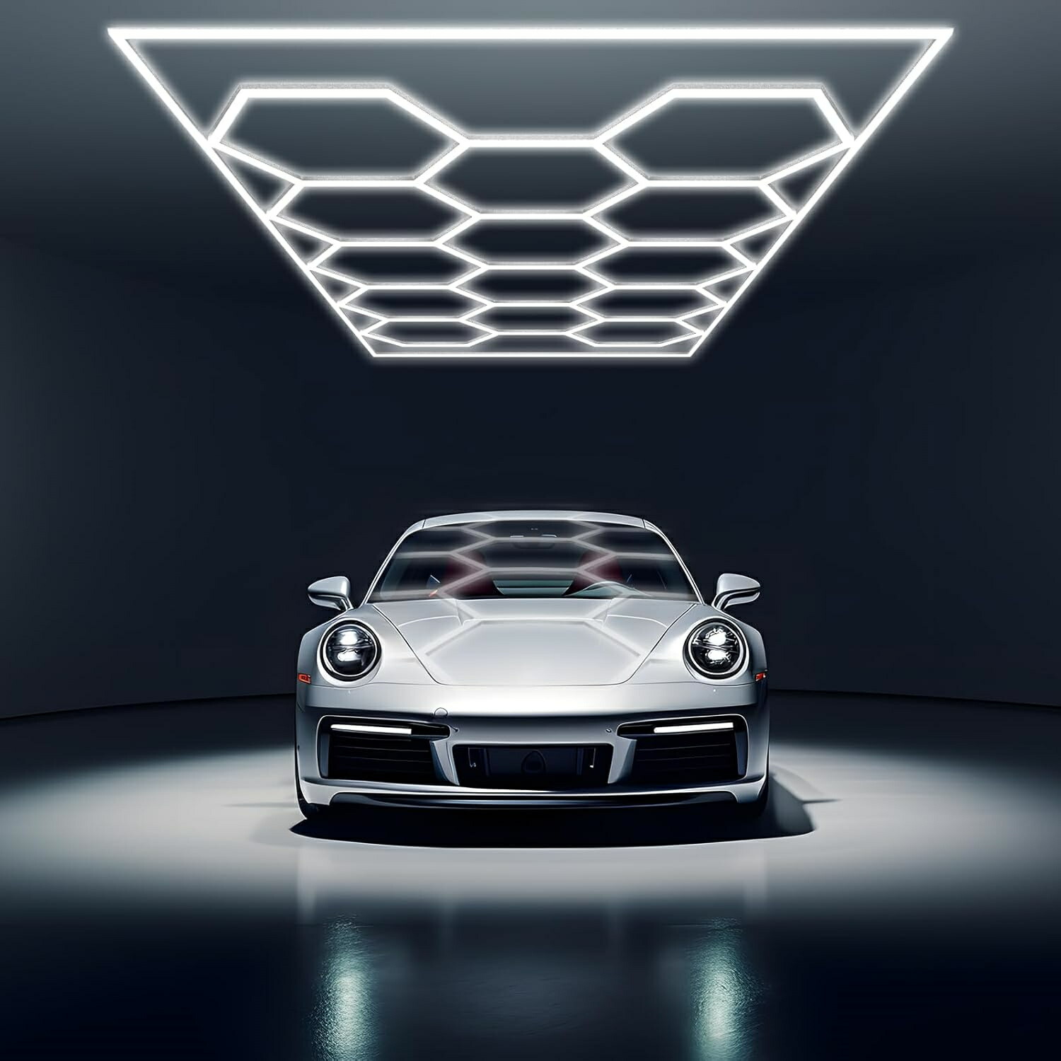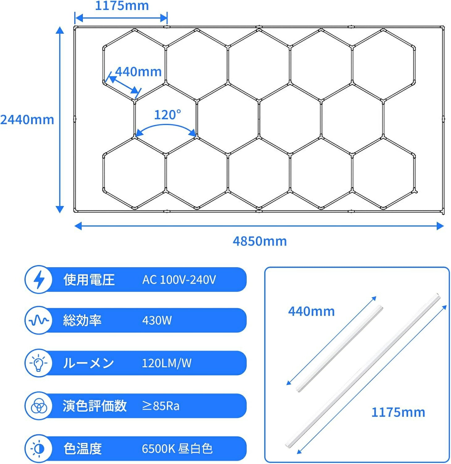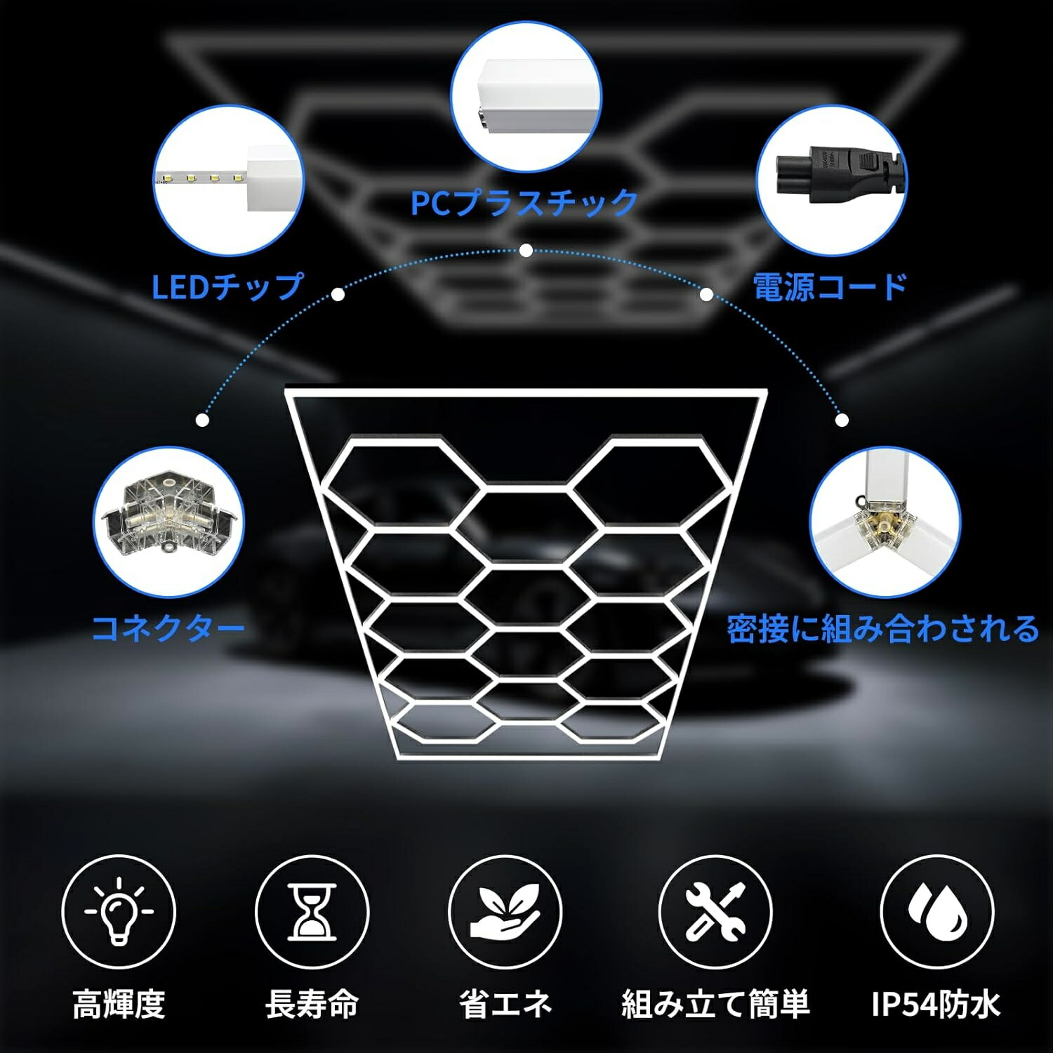 六角形ガレージライト - ハニカムライト 430W 51600LM 6500K 高輝度 DIYセット 洗車室 ショールーム用 PCプラスチック製 14個六角形ライト