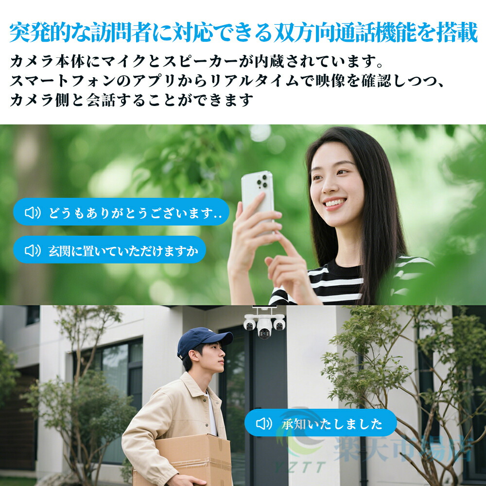 この屋外カメラは PIR 人体センサーを搭載し、人体の動きのみを検知します。人体の移動を検知すると、即座にスナップショット写真付きのアラートメッセージをスマートフォンに送信します。この機能は不法行為の防止だけでなく、宅配便など臨時の来客通知にも活用できます。