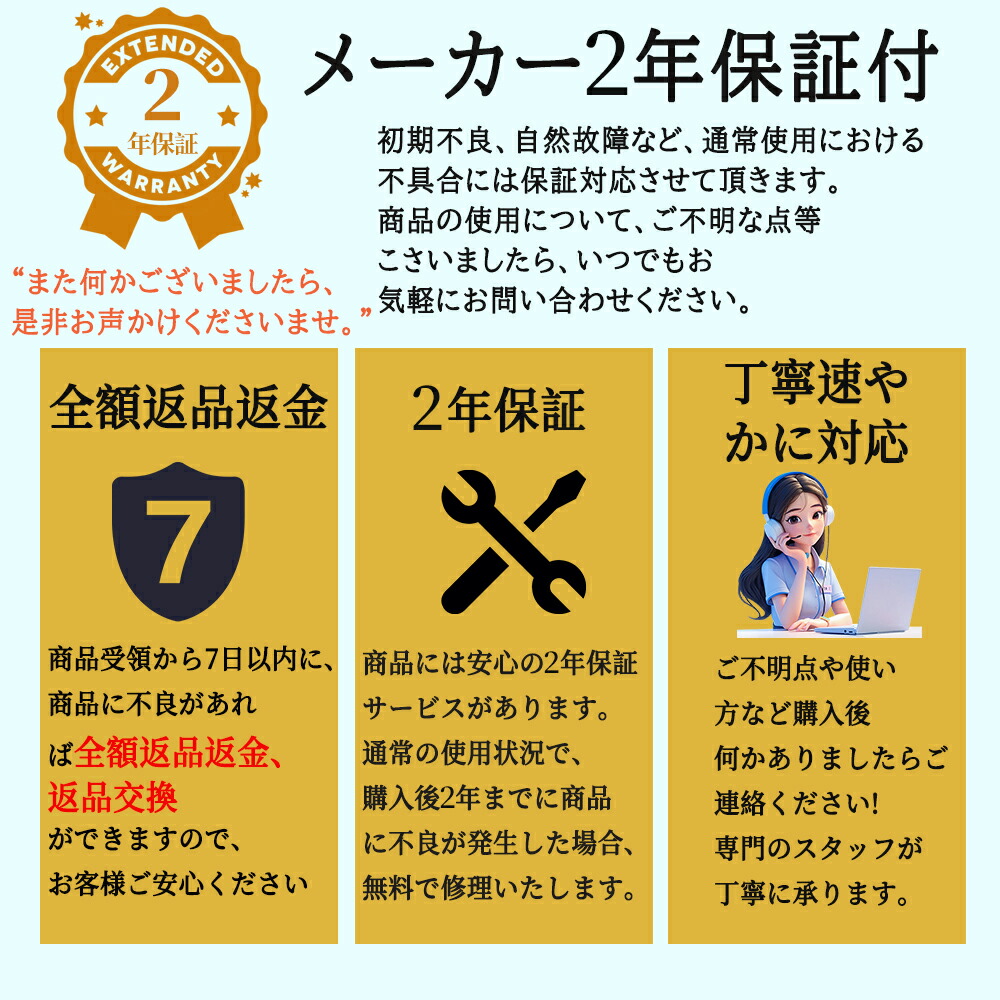 購入前の相談、製品使用上の疑問、万が一の製品不具合が発生した場合でも、新品交換や返金サービスを提供し、ご使用上の不安を解消します。弊社公式メールアドレスまでお気軽にお問い合わせください(稼働時間:月曜日~金曜日 9:00~18:00)。