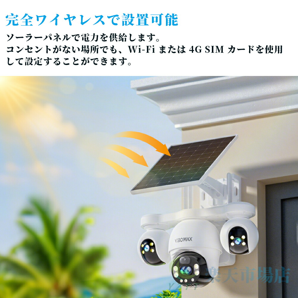 防犯カメラ 監視カメラ 屋外 ソーラー 家庭用 200 万画素 SIM 4G通信 wifi 無線 ワイヤレス 電源不要 ベルト 防水 防犯 工事不要 ソーラー充電 ソーラーパネル 屋外用