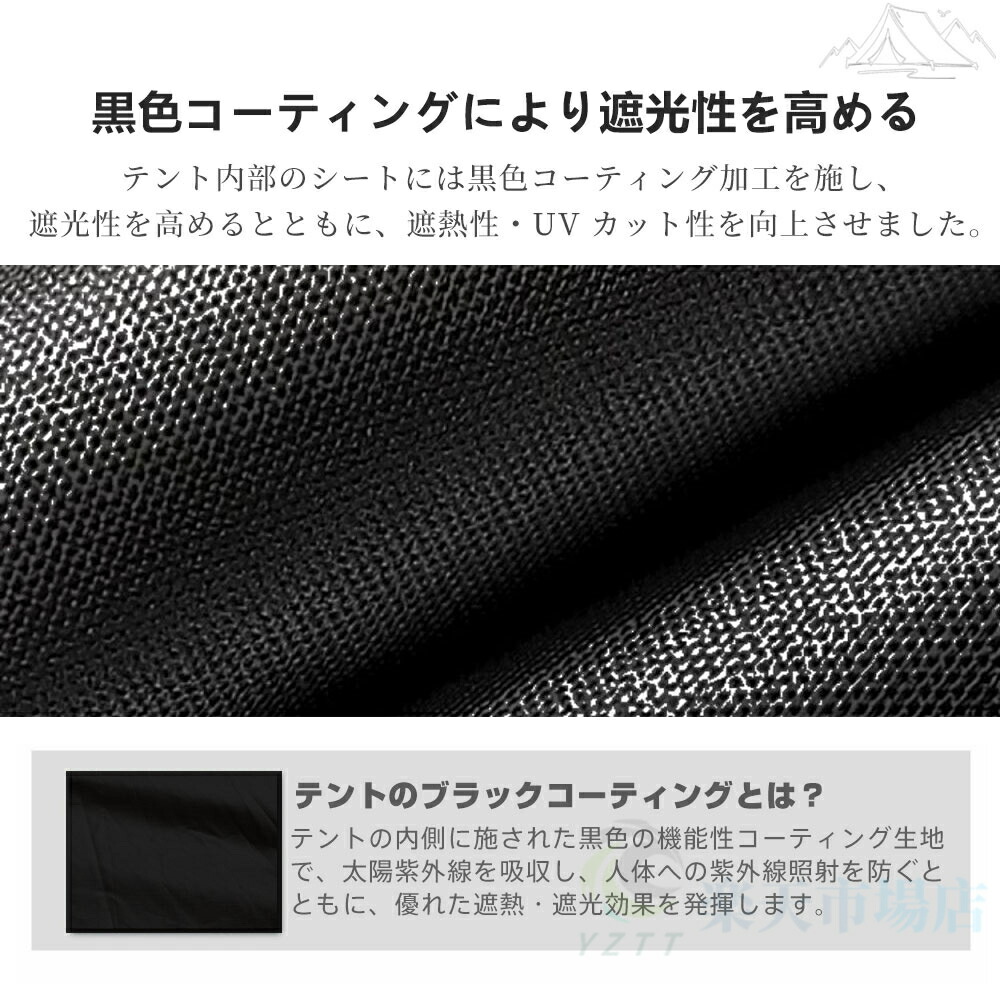 側面からも、さわやかに風が通る。テント内の空気をより効率的に換気。 テント内をより涼しく テントの内側に紫外線をカットする加工を施しました。遮熱効果もあり、過ごしやすいです。