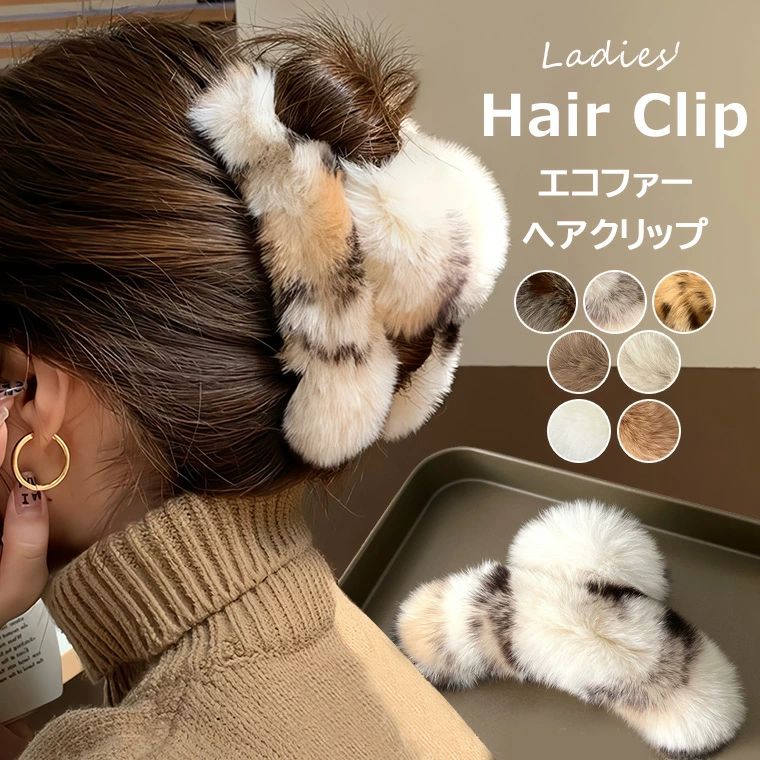 シーズンムードをプラス エコファーヘアクリップ ふわふわ アニマル柄 フェイクファー ヘアクリップ ヘアアクセサリー ハーフアップ まとめ髪 冬 ヘアアクセ オフィス 高見え バンスクリップ 可愛い