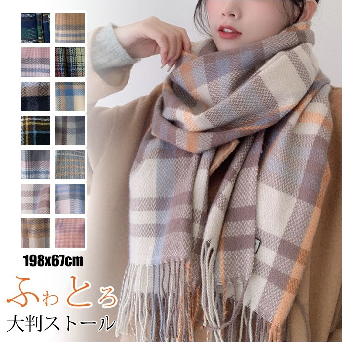 ストール 大判 マフラー レディース チェック 防寒 結婚式 厚手 可愛い 暖かい 羽織 なめらか起毛 ひざ掛け 旅行 秋 冬 秋冬 大きめ クリスマス ギフト プレゼント 母の日 バレンタイン