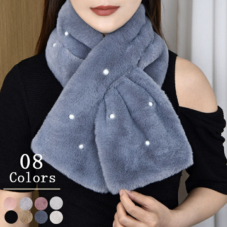 パール ファー ストール ティペット マフラー フェイクファー ファーティぺット レディース ビーズ 秋冬 ふわふわ 秋 冬 もこもこ やわらか かわいい あったか 結婚式 通勤 通学 落ち ふんわり
