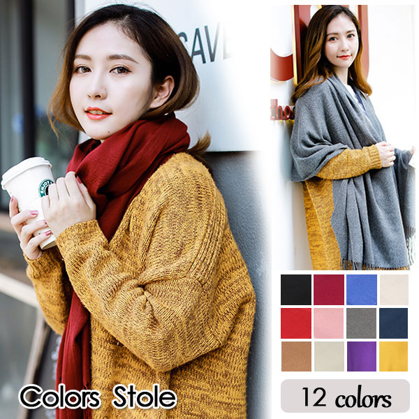 3B33 無地大判ストール 選べる13カラー マフラー ショール カシミアタッチ カシミヤ風 膝掛け 小顔 レディース パシュミナ風