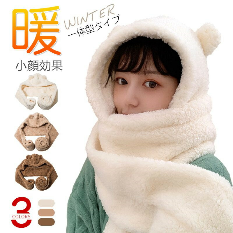 暖か ふわふわ 秋冬 帽子 マフラー 手袋 一体型 フード付マフラー スカーフ 厚手 ネックウォーマー かわいい 小顔効果 もこもこ 超可愛い ファー ぬくぬく 防寒 アウトドア あったか