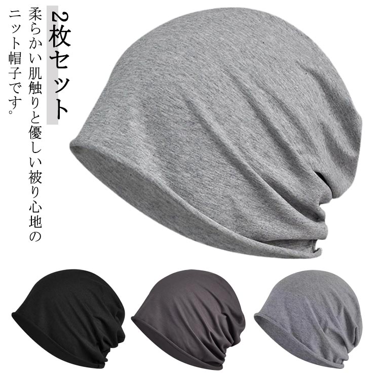 ストレッチ性 メンズ 脱毛 外出用 就寝用 ケア帽子 抗がん剤 ニット帽 洗える 2枚セット 通気性 薄手 レディース 春夏秋用 ナイトキャップ 柔らかい 室内用 男女兼用