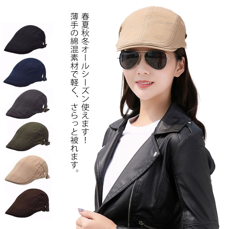 ハンチング キャップ オールシーズン 帽子 サイドベルト 55-62 男女兼用 ブラック ベージュ ブラウン ネイビー グレー カーキグリーン