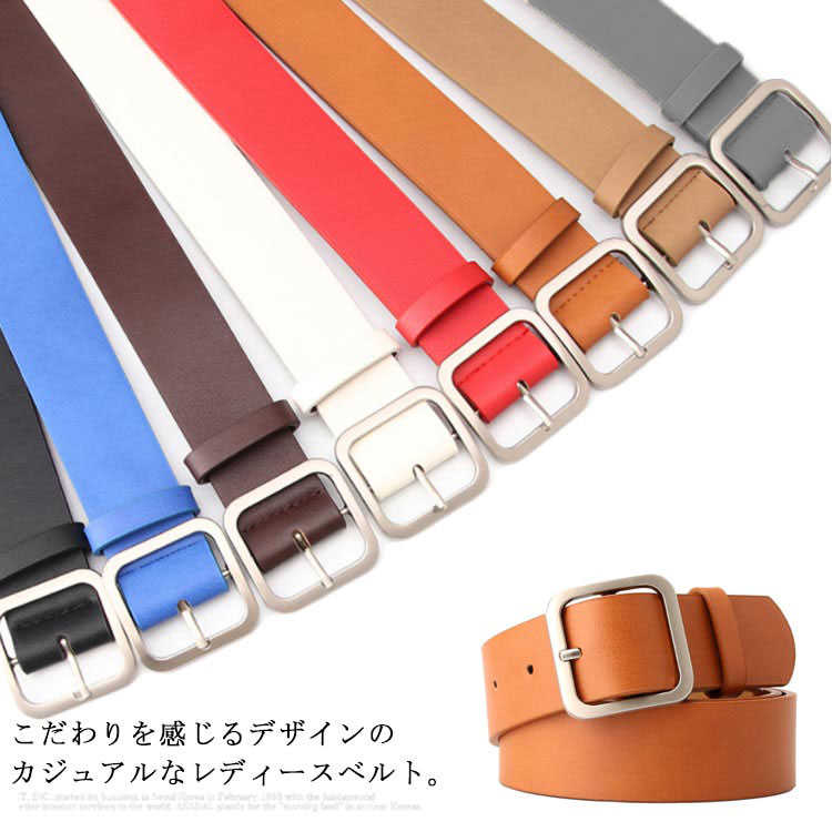 オールシーズン 太ベルト 穴なし スクエアバックルベルト タイプ レディース 103cm×3cm 太幅 カジュアルベルト 全6色