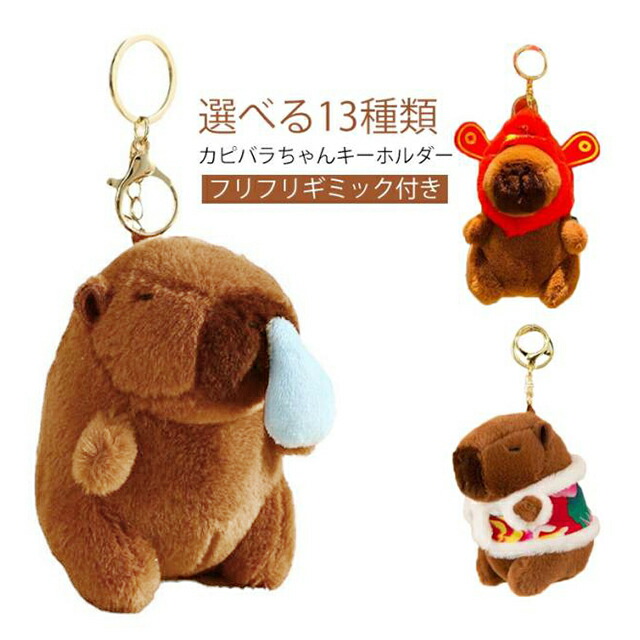 【選べる13種類】ぬいぐるみキーホルダー キーリング おしゃれ おもしろい カピバラ 水豚 キーホルダー かわいい バッグチャーム アクセサリー キュート 雑貨 ギフト プレゼント