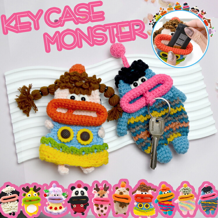 キーケース モンスター スマートキーケース キャラクター レディース メンズ 手編み 個性的 マスコットキーホルダー 毛糸のマスコット カー 車 鍵 キーカバー 収納 ニット ハンドメイド 雑 手作り