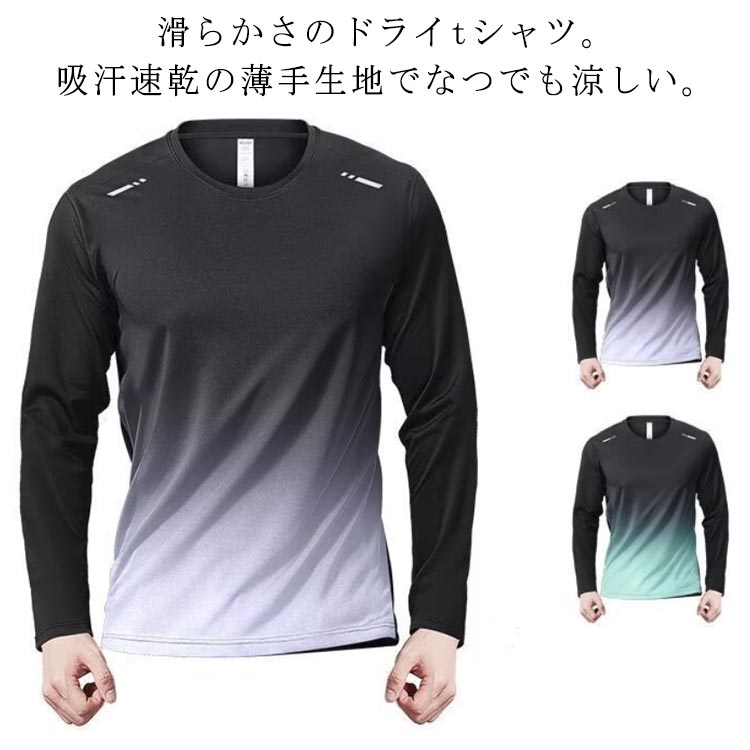 速乾 長袖tシャツ メンズ 涼しい ロンt 夏用 薄手 長袖 tシャツ uvカット グラデーション ウォーキング 肌着 インナーシャツ 吸汗速乾 UVカット 大きいサイズ ロンT 接触冷感