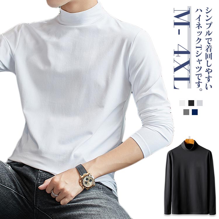 トップス カットソー メンズ 黒 Tシャツ 白 灰 ブラック ホワイト グレー スリム ハイネック 無地 大きいサイズ