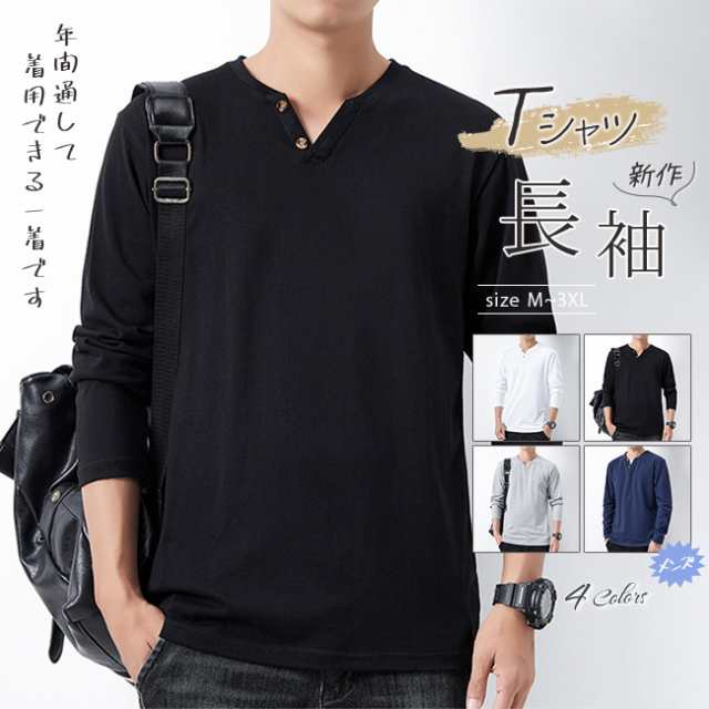 長袖Tシャツ メンズ tシャツ長袖 vネック 綿100% 春服 長袖 プルオーバー tシャツ トップス カジュアル 通勤 トレーナー