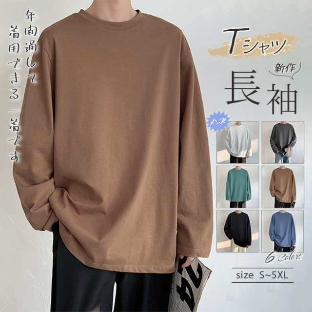 長袖Tシャツ メンズ tシャツ長袖 大きいサイズ 綿 無地 ゆったり 柔らか ビッグシルエット コットン 肌着 トップス カジュアル