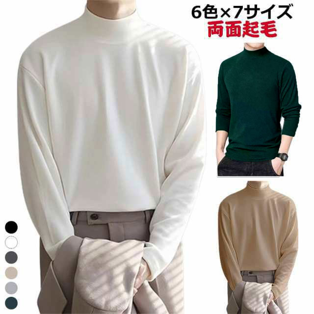 シャツ メンズ ハイネック 長袖 トップス インナー 暖かい カットソー モックネック シンプル カジュアル