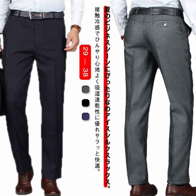 ロングパンツ 接触冷感 涼感 夏 春夏 メンズ スラックス 薄手 ビジネスパンツ 大きいサイズ ノーアイロン 清涼 ズボン スーツパンツ 吸水速乾 美脚 アイスシルク 洗える ゴルフパン 涼しい
