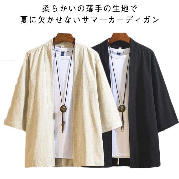 カーディガン 綿麻混 メンズ 薄手 和式 サマーカーディガン 無地 和風 七分袖 夏服 羽織り お洒落 シャツ 通気性 体型カバー ゆったり 軽量 大きいサイズ