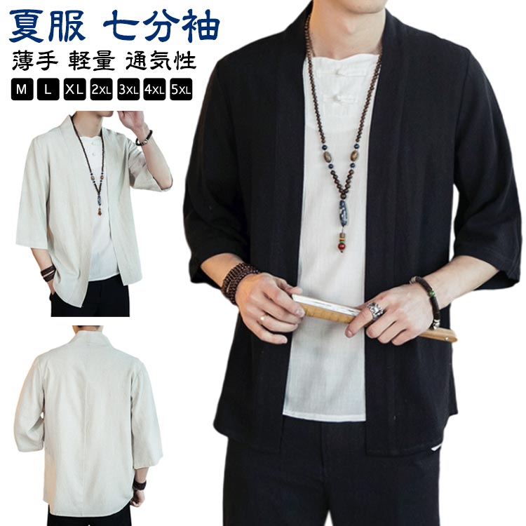 七分袖カーディガン 和風 メンズ 春服 サマーカーディガン トップス ジャケット 作務衣 ゆったり 涼しい おしゃれ カジュアル 大きいサイズ 薄手 部屋着 シンプル