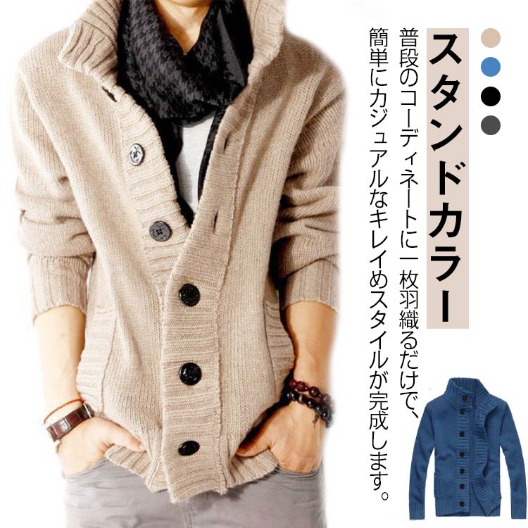 スタンドカラー ニットカーディガン メンズ ニット カーディガン ビジネス ニットセーター ボタン トップス アウター 洗える 大きいサイズ 長袖 カジュアル おしゃれ 秋冬 M XL 2XL 3 L