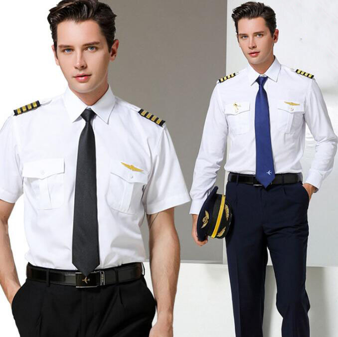 平日着も可 男性用 パイロット 飛行士 キャプテン 船長 ワイシャツ ユニフォーム 舞台衣装 ステージ衣装 コスプレ シャツ 肩章 ネクタイ ワッペン付き!