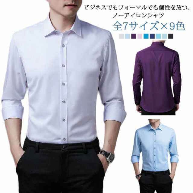 全7サイズ×9色 ノーアイロンシャツ 長袖 紳士 ビジネス フォーマルシャツ
