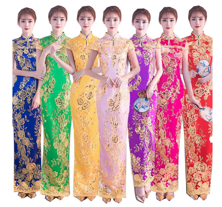 中式結婚式 ドレス チャイナドレス ロング 精巧な刺繍花柄 スリット スリムドレス チャイナ服 パーティードレス 二次会 お呼ばれ 発表会 謝恩会 お色直し 花嫁 中華風 7色 -3