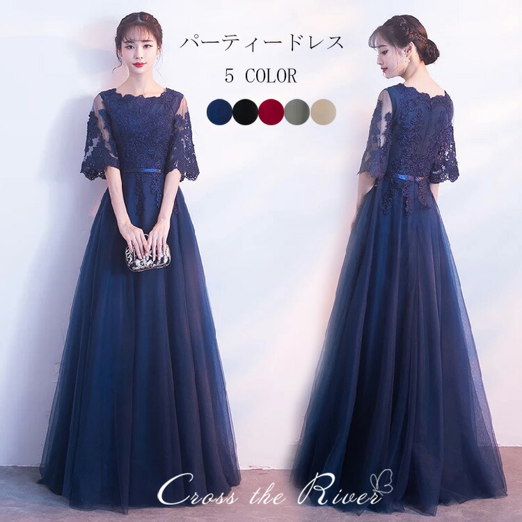 ドレス 大人 ピアノ発表会 高校生 ロングドレス 演奏会ドレス 黒 紺 中学生 パーティードレス 韓国 結婚式 イブニングドレス レディース フォーマル 花柄 赤 袖付き マキシ丈 Aライン チ 膝丈